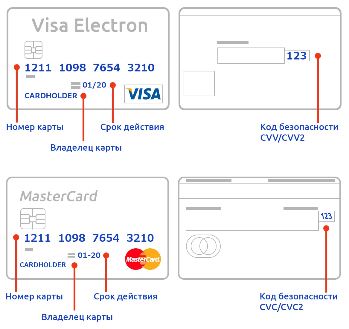 • CVV/CVV2 код для карт Visa или CVC/CVC2 код для карт MasterCard (три последние цифры на полосе для подписи на оборотной стороне карты)
